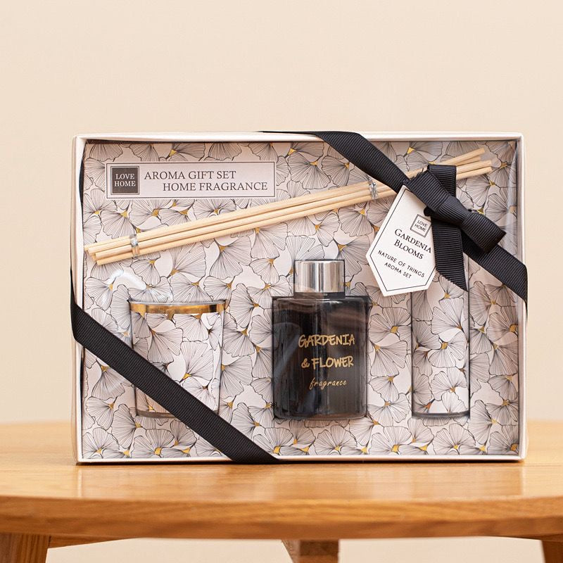 a beautifully packaged aroma gift set presented