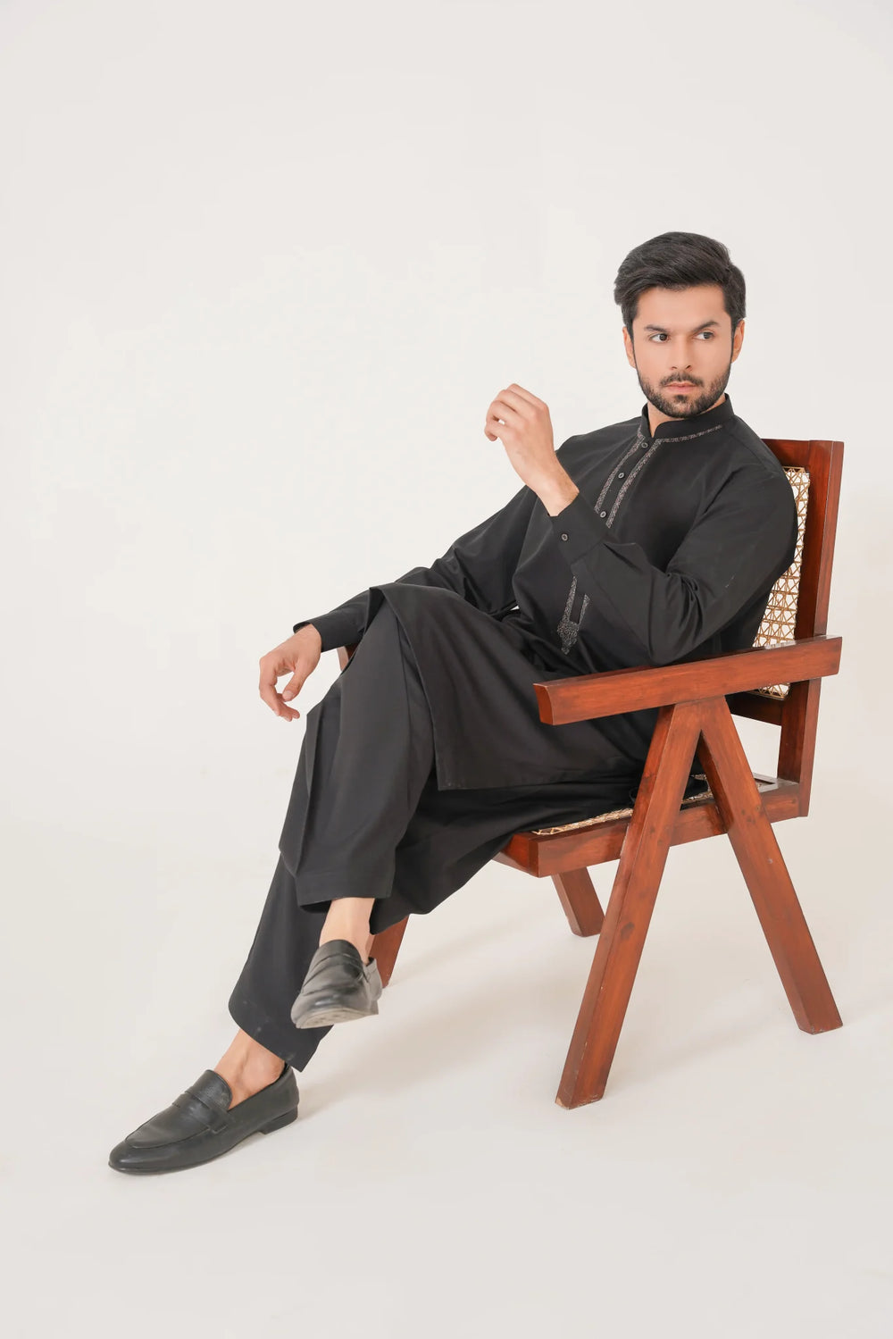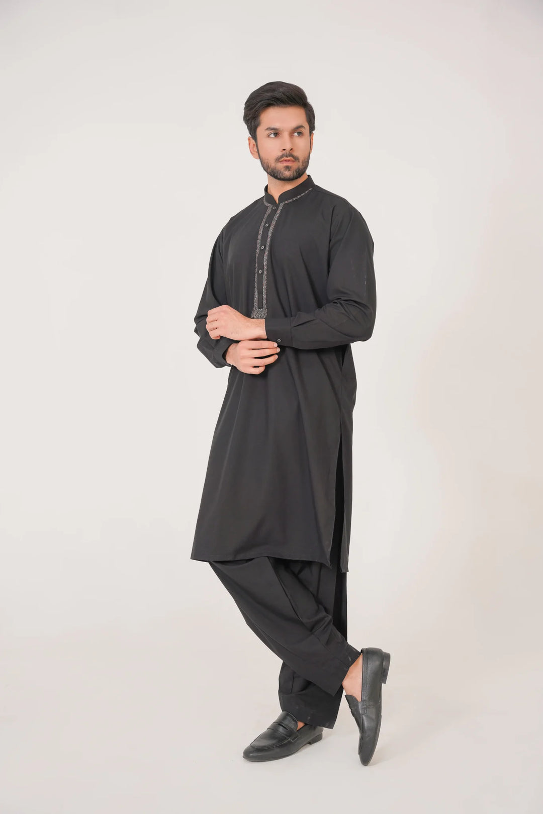 Al-Qaisar Men's Embroidered Black Shalwar Kameez AQ-11