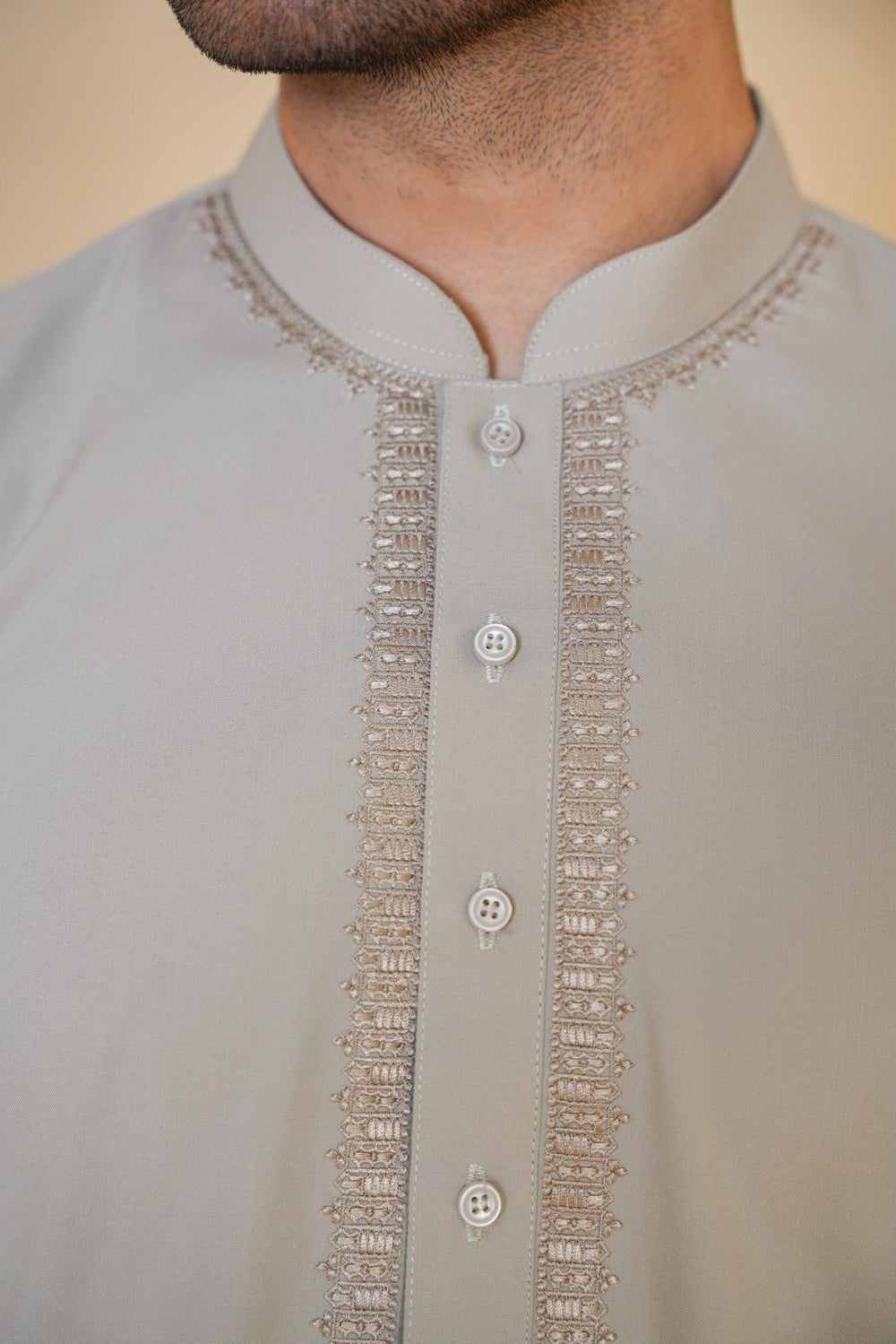 Al-Qaisar Men's Embroidered Grey Shalwar Kameez AQ-14