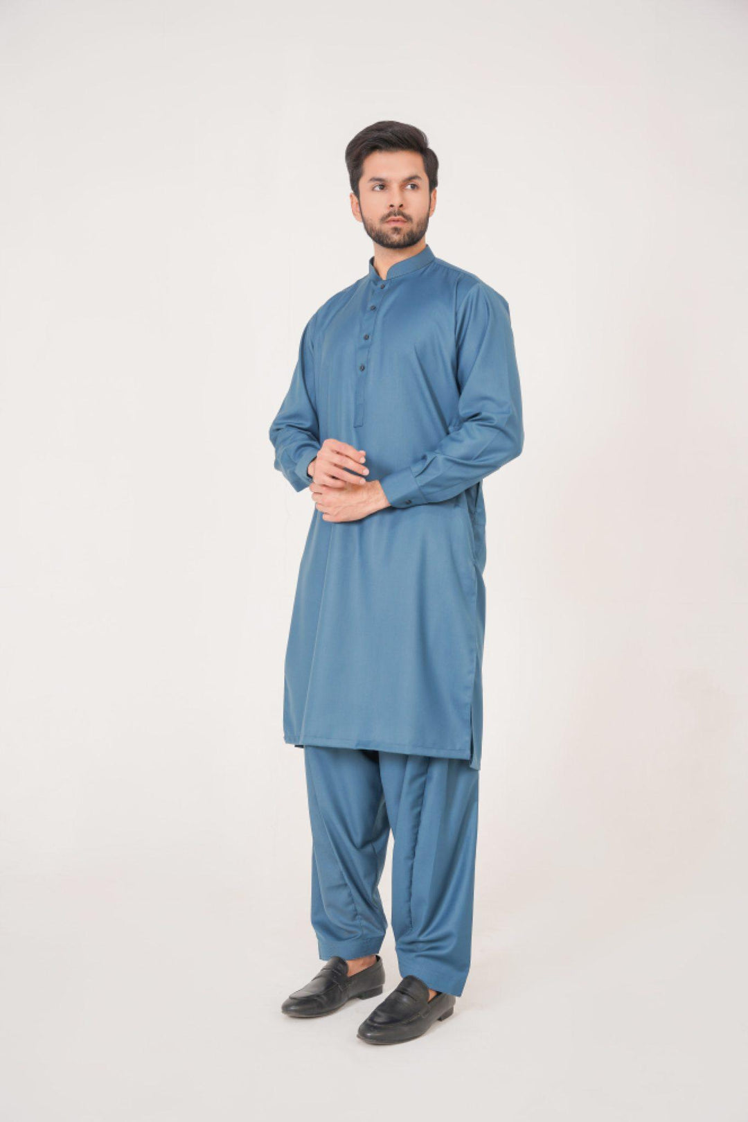 Al-Qaisar Men's Embroidered Sky Blue Shalwar Kameez AQ-25