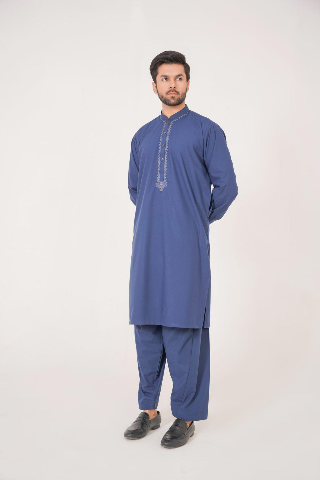 Al-Qaisar Men's Embroidered Navy Blue Shalwar Kameez AQ-10