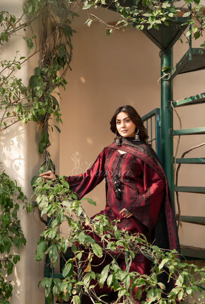 Karma Luxury Winter Collection – 3-Piece Ready-to-Wear(CRANBERRY ) -1530