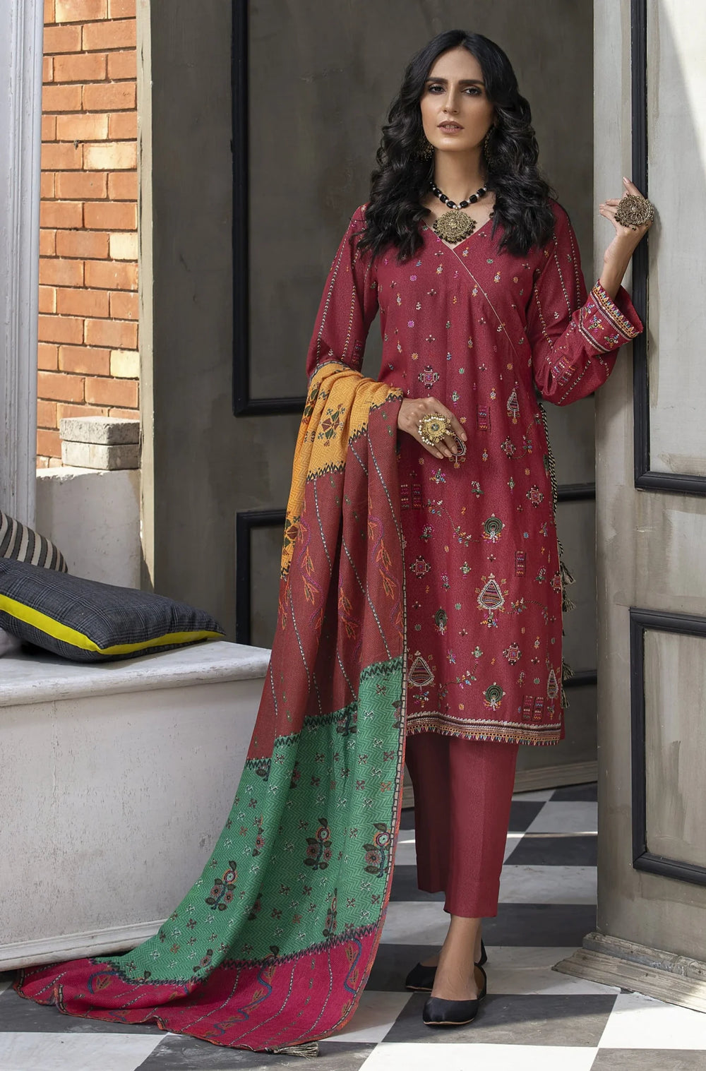 Lakhany 3-Piece Ready To Wear Embroidered Karandi - LSM-2537 Red